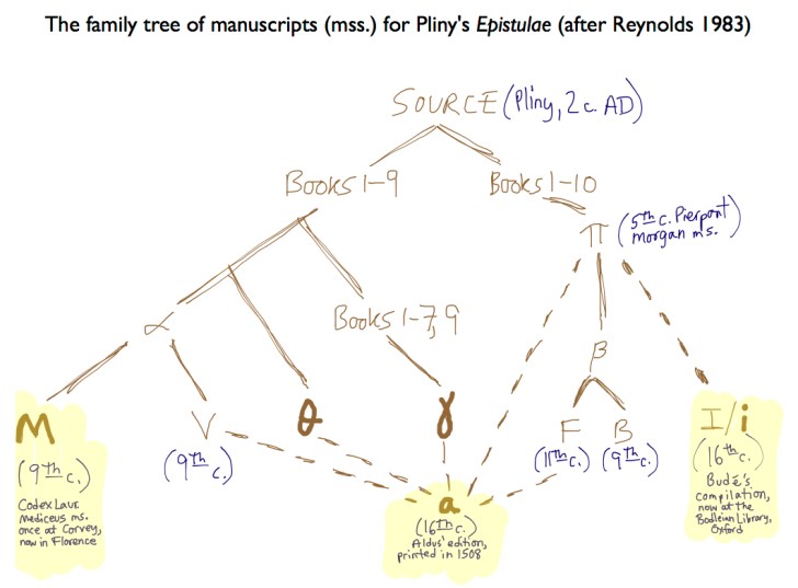 As the list of series and sources above can be confusing, here’s a graphical representation of how the Younger Pliny’s letters have descended to us: